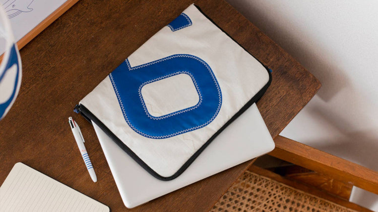 Laptophülle "MacBook 13 Zoll" by 727 Sailbags / Segeltuch weiß / Motiv 9 blau