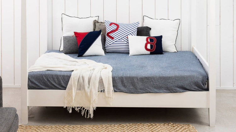 Sofakissen 30 x 50 cm by 727 Sailbags / Segeltuch weiß navy / Motiv 8 rot