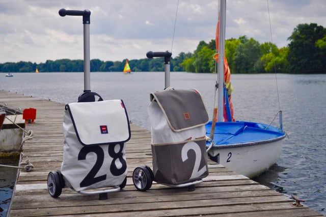 Pfiffige Segeltuch-Trolleys mit hochwertigem Premium-Gestell und ultraleicht laufenden Rollen. Ideal für deinen nächsten Wochenendeinkauf.