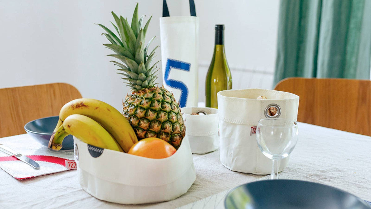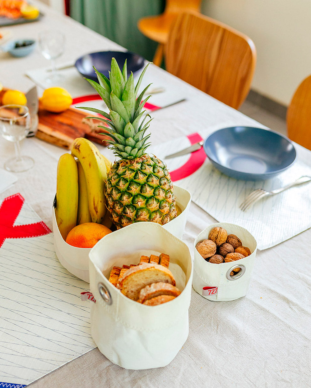 Praktische Tischkörbe aus recyceltem Segeltuch. Ideal für Früchte, Nüsse, Brot, Brötchen &...