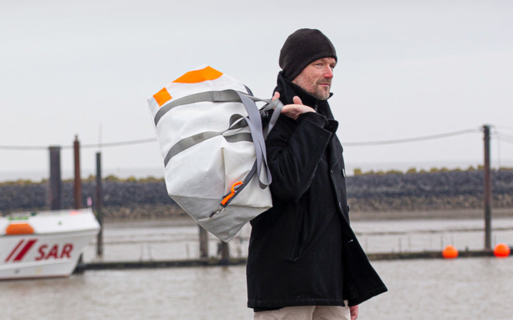 Die Segel werden direkt bei Seglern und Yachtbesitzern gekauft, um sie in Handarbeit zu Taschen aus Segeltuchzu verarbeiten.