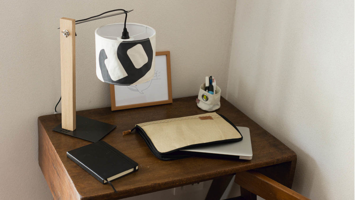 Schöne Schreibtischlampe mit Metallstandfuß für deinen Schreibtisch. Das Segeltuch sorgt für sehr sanftes...