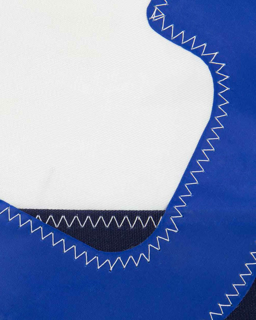 Damen Handtasche "Legende" by 727 Sailbags / Segeltuch weiß / Boden navy / Motiv 7 blau