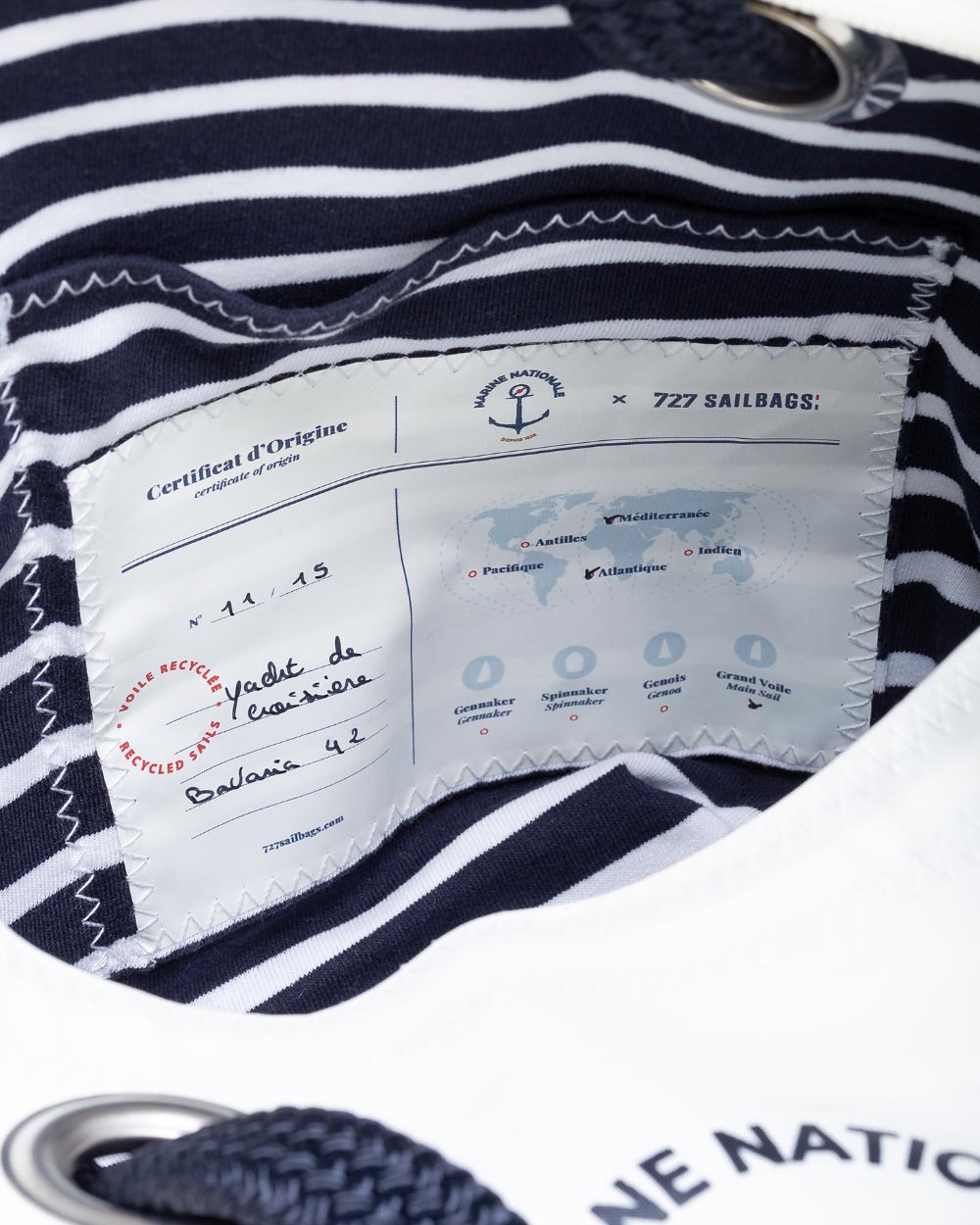 Mit eingenähtem Herkunftsnachweis des Segels