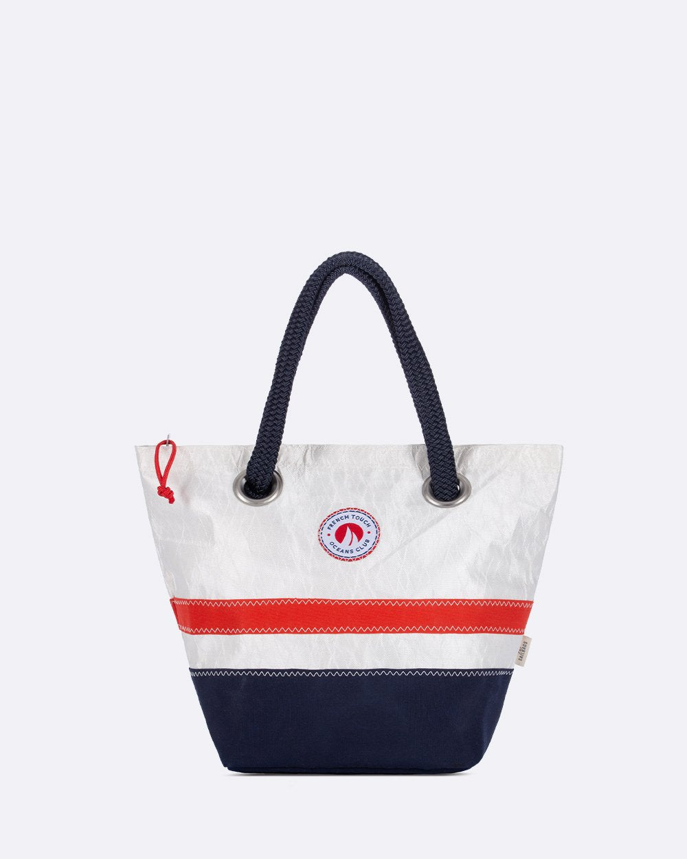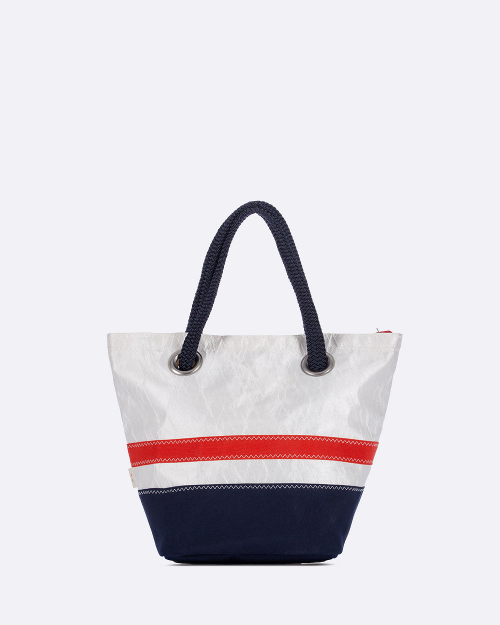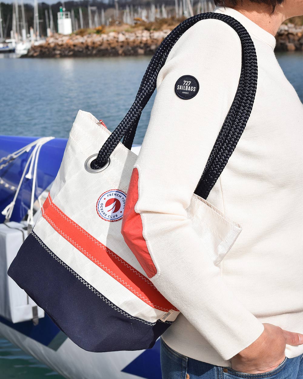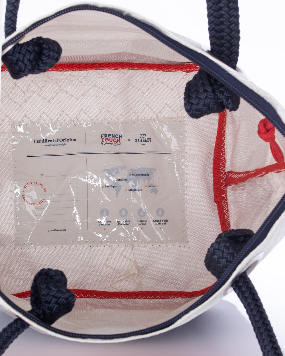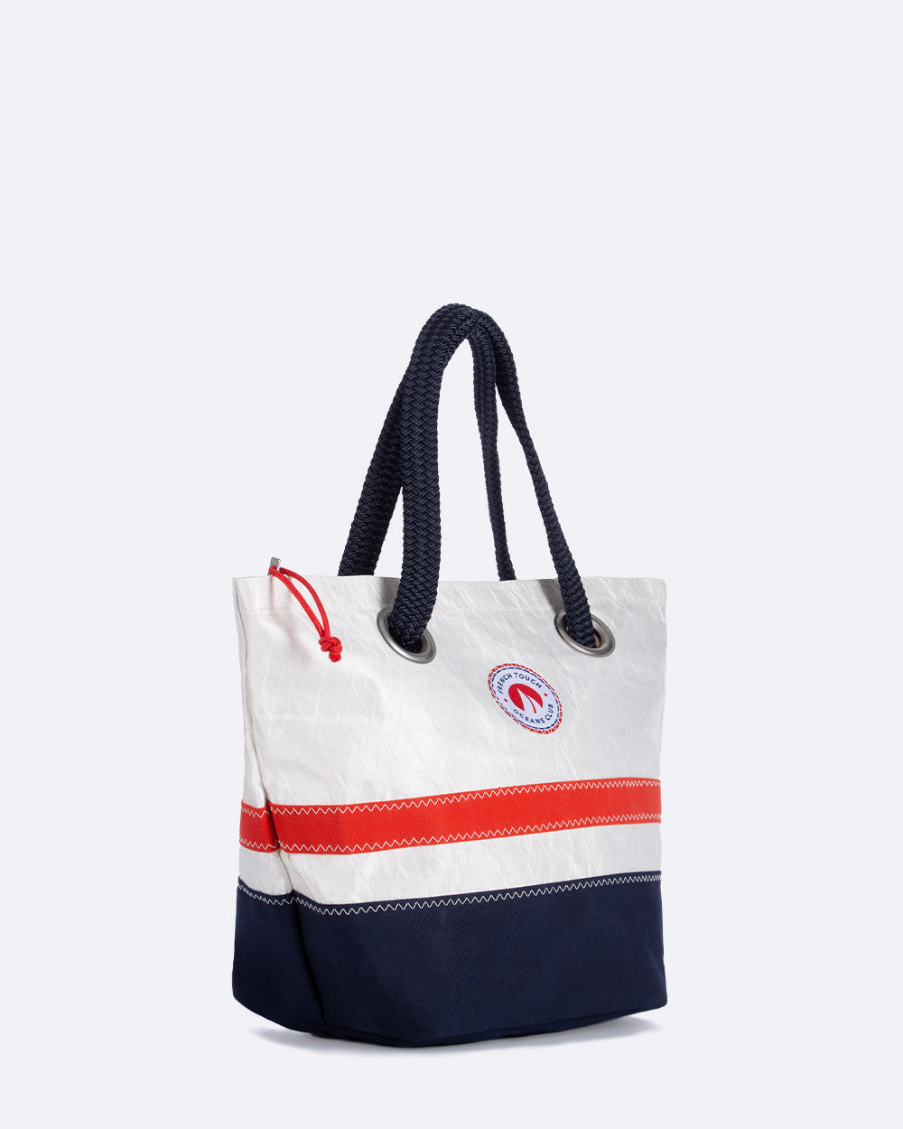 Damen Handtasche "Legende" by 727 Sailbags / Segeltuch weiß rot / Boden navy