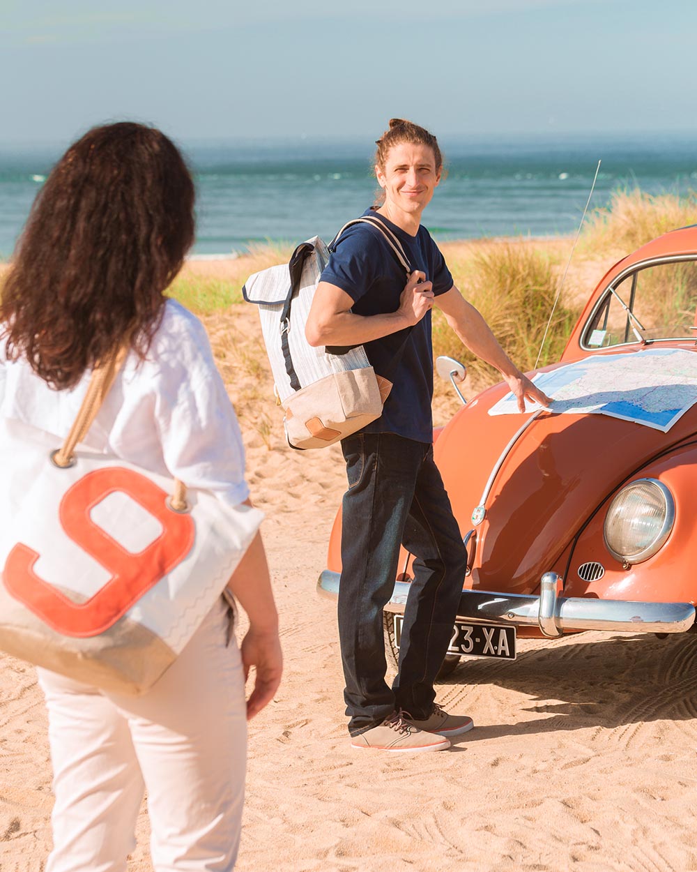 Dieses Produkt wird auf Basis des Segels aus Dacron hergestellt, das auf einer Yacht gedient hat. Diese Polyesterfaser ist wenig empfindlich für UV-Strahlungen und Witterungseinflüsse. Die Segel aus Dacron werden aufgrund ihrer Widerstandsfähigkeit insbesondere für die Ausstattung von Schwertbooten und Yachten verwendet.