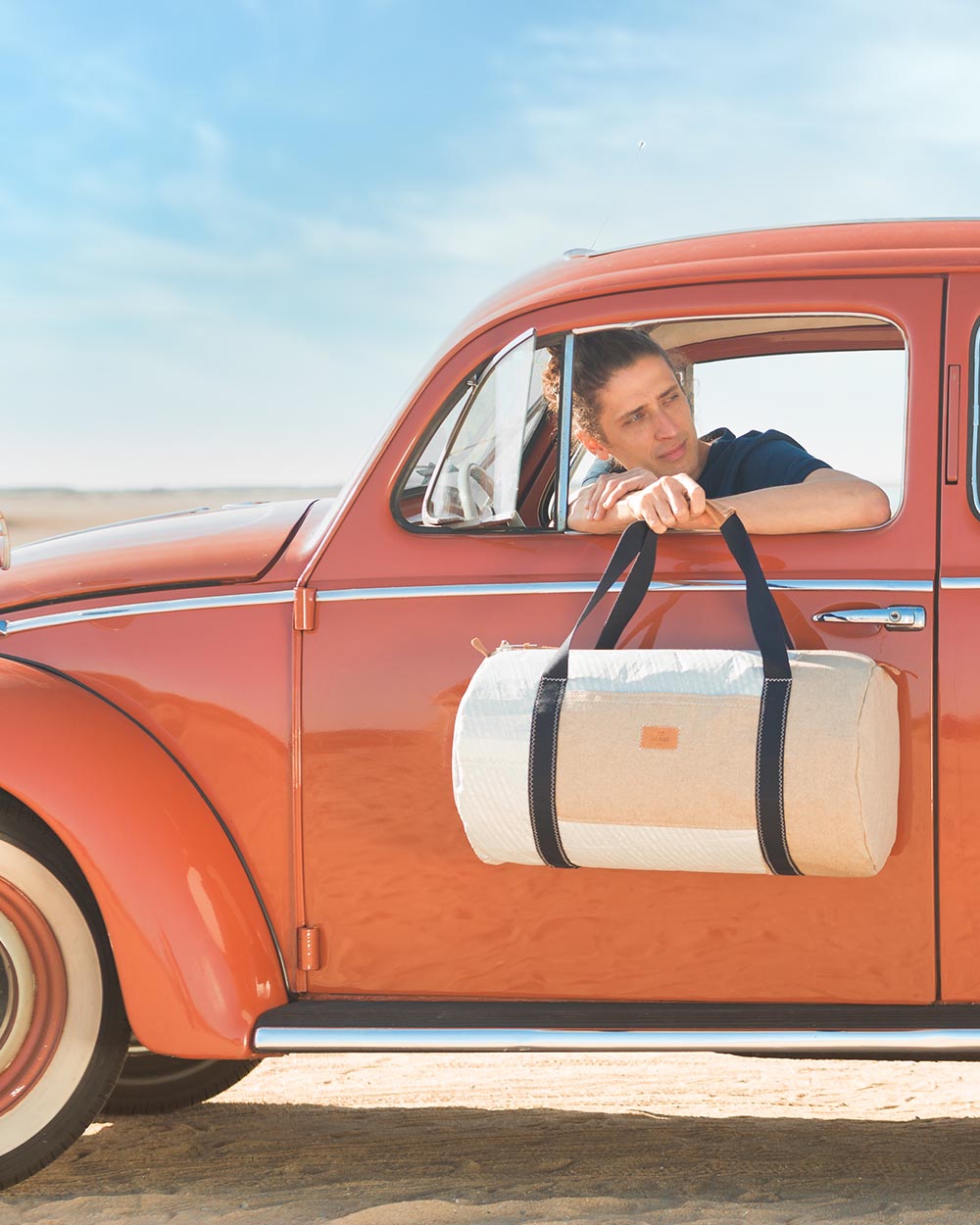 Reisetasche "Onshore" by 727 Sailbags / Segeltuch weiß Leinen