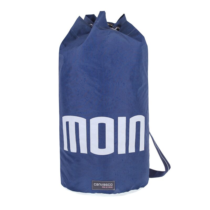 Seesack CANVASCO "Seasick" / Segeltuch blau / Gurt blau-weiß / Motiv Moin weiß