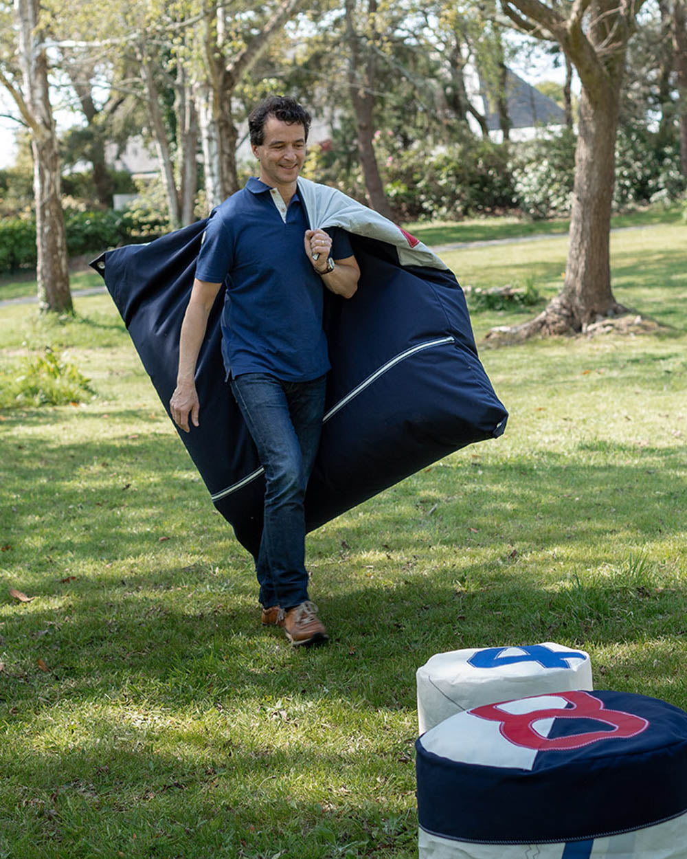 Sitzsack Sitzkissen "Maxi" by 727 Sailbags / Segeltuch weiß / Boden navy / Motiv 472 rot