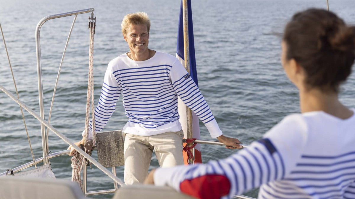 Die Kooperation Armor Lux x 727 Sailbags: ein Loblied an die Bretagne. Inspiriert von Küste und iodhaltiger Luft bietet diese Kollektion einen Vorgeschmack auf den Frühling und sonnige Anlegeplätze.