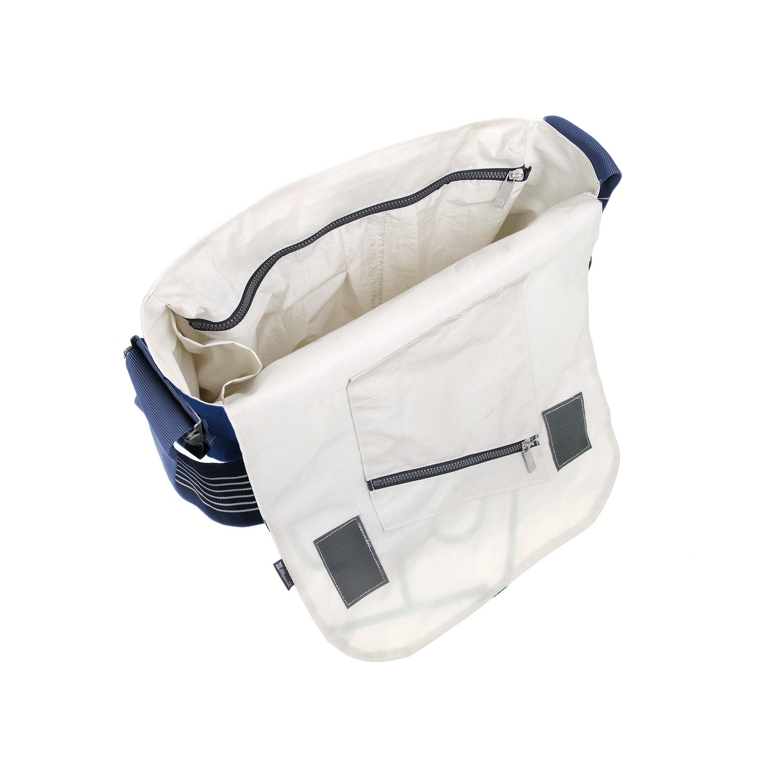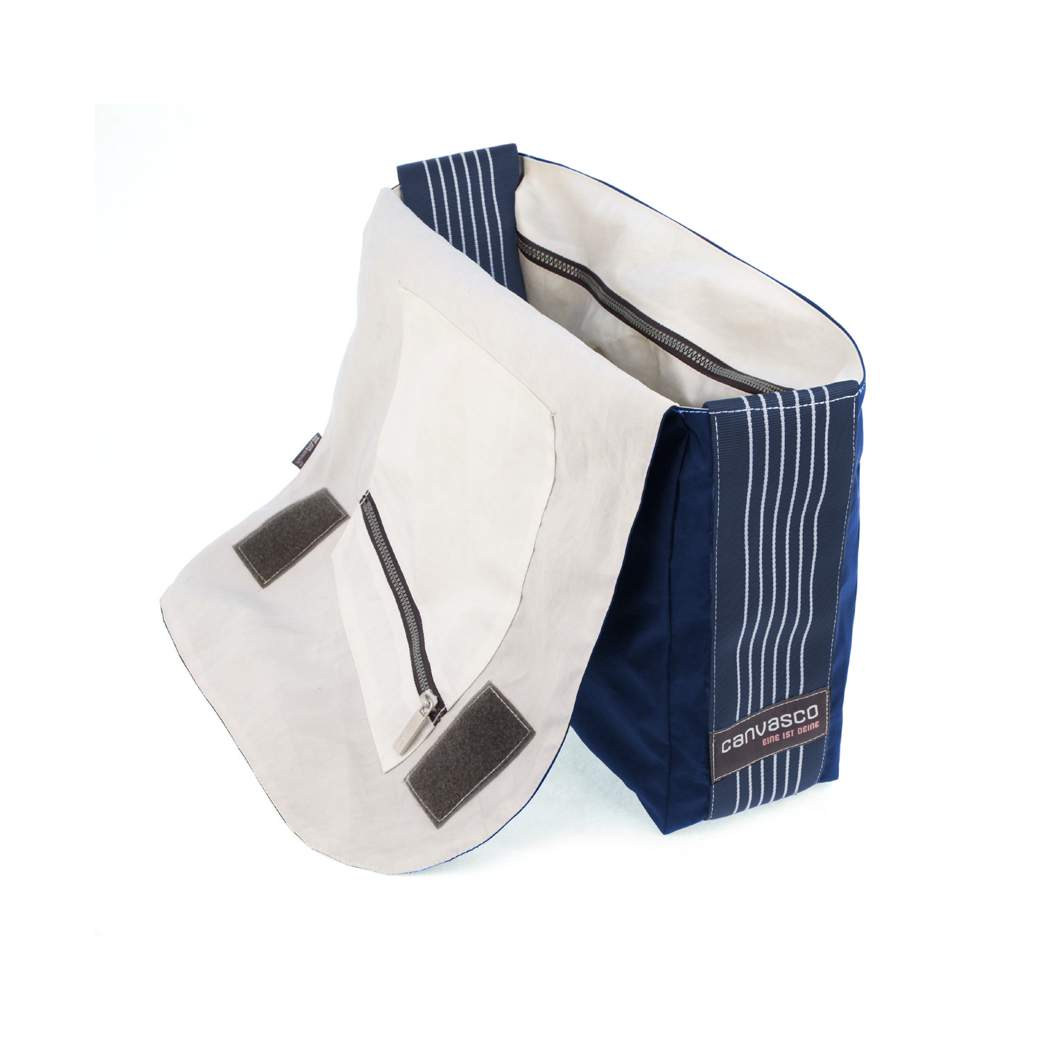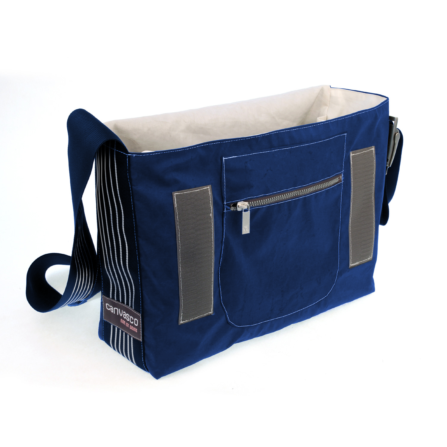 Umhängetasche CANVASCO "Urban" / Segeltuch blau / Gurt blau-weiß / Motiv 84 weiß
