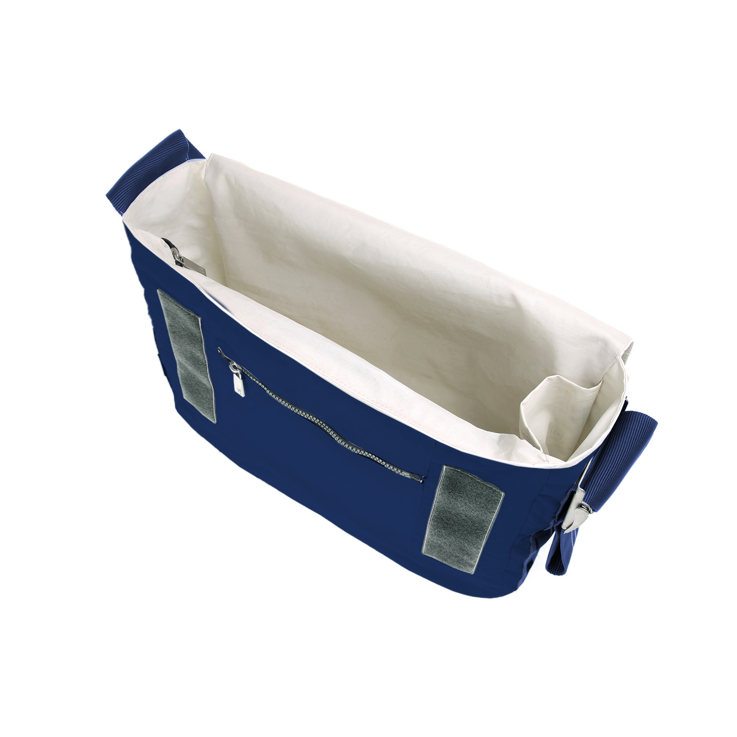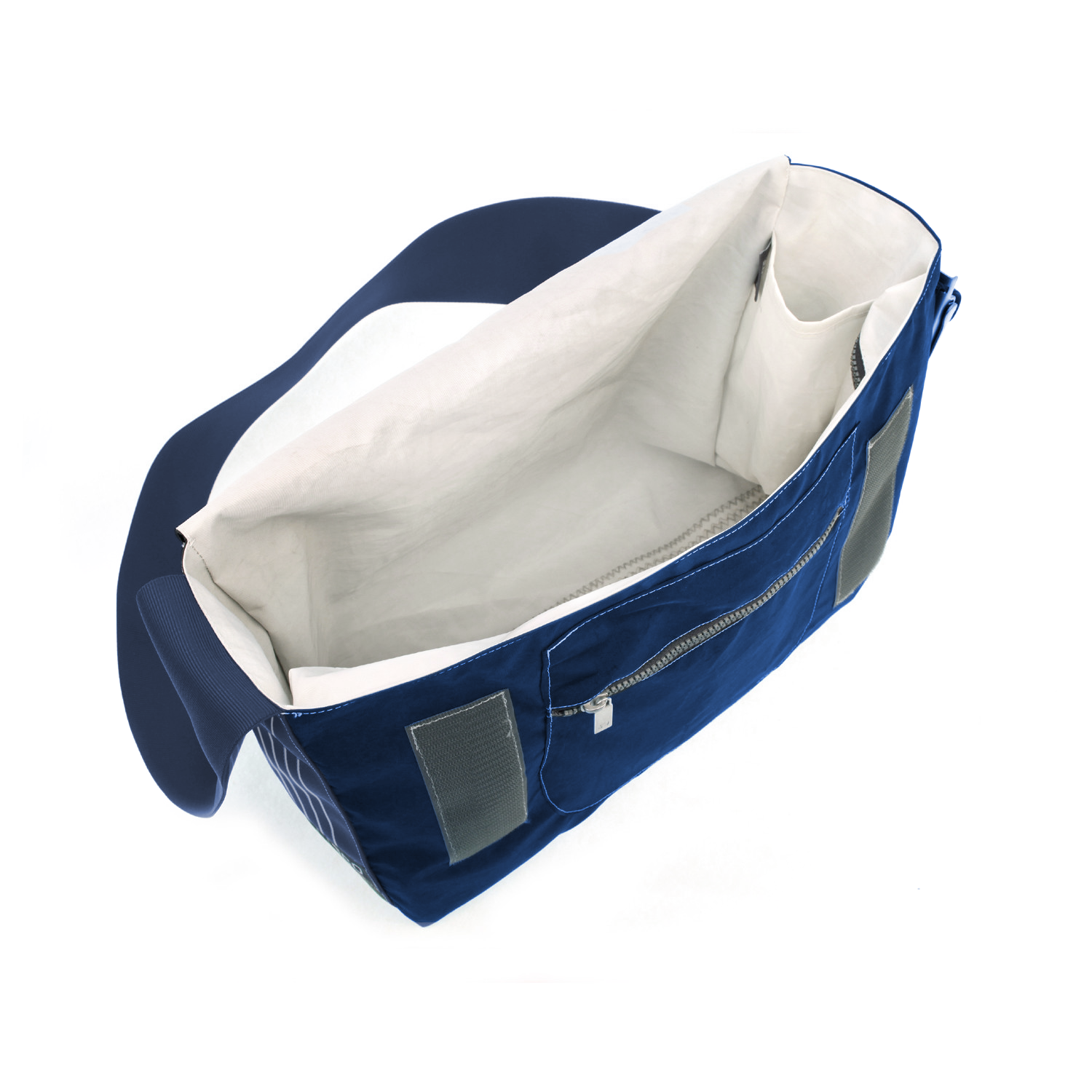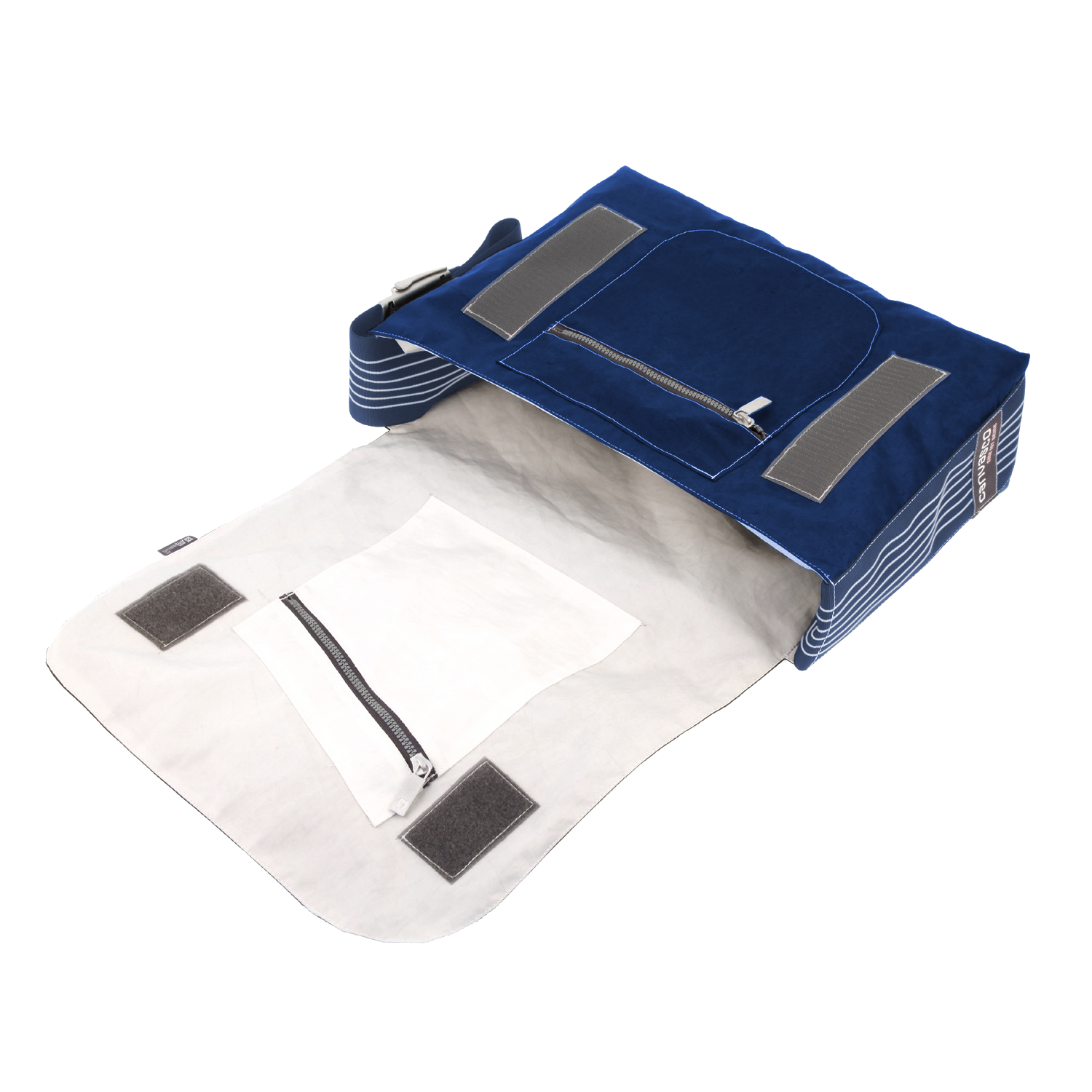 Umhängetasche CANVASCO "Urban" / Segeltuch blau / Gurt blau-weiß / Motiv 84 weiß