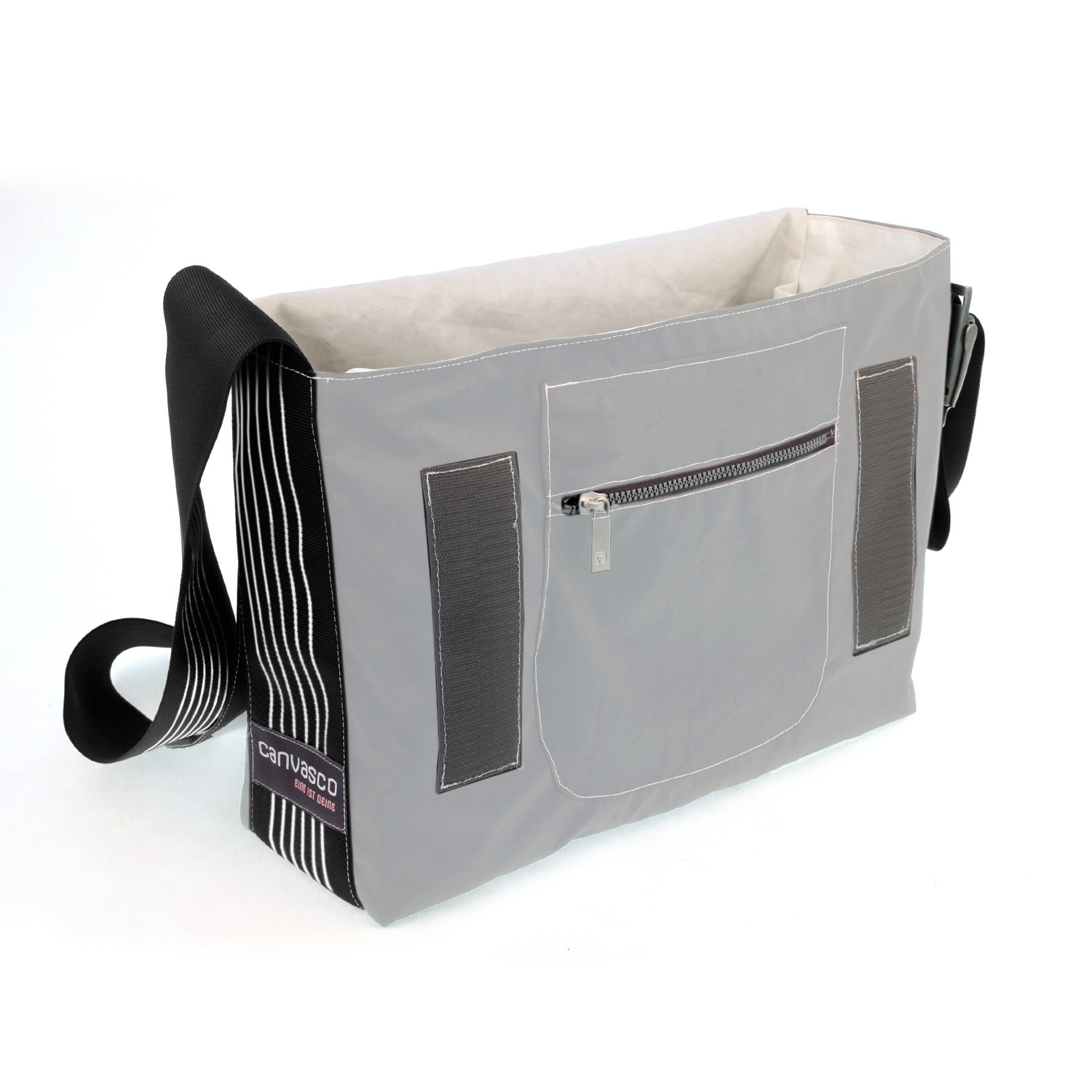 Umhängetasche CANVASCO "Urban" / Segeltuch grau / Gurt schwarz-weiß / Motiv 65 schwarz