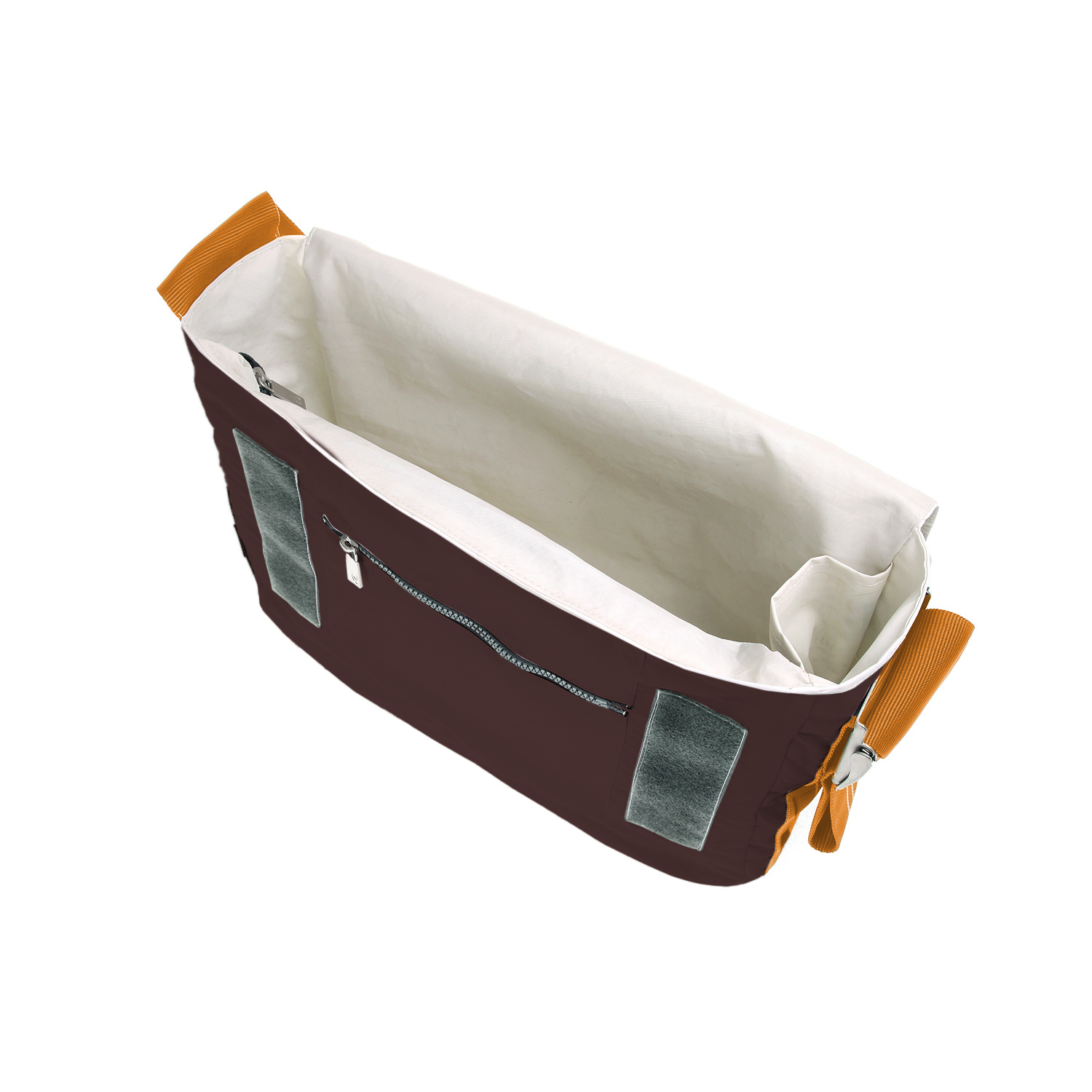 Umhängetasche CANVASCO "Urban" / Segeltuch schoko / Gurt cognac-schwarz / Motiv 85 weiß