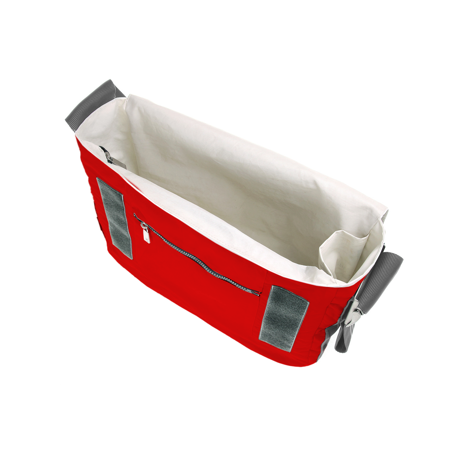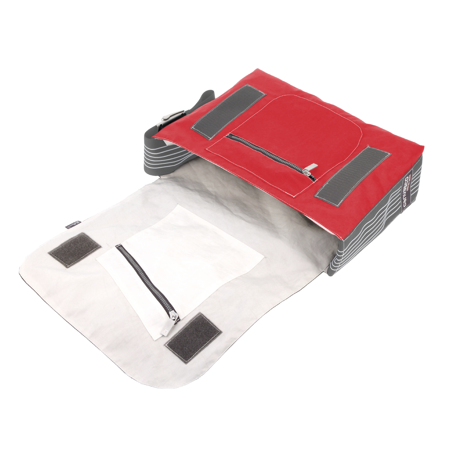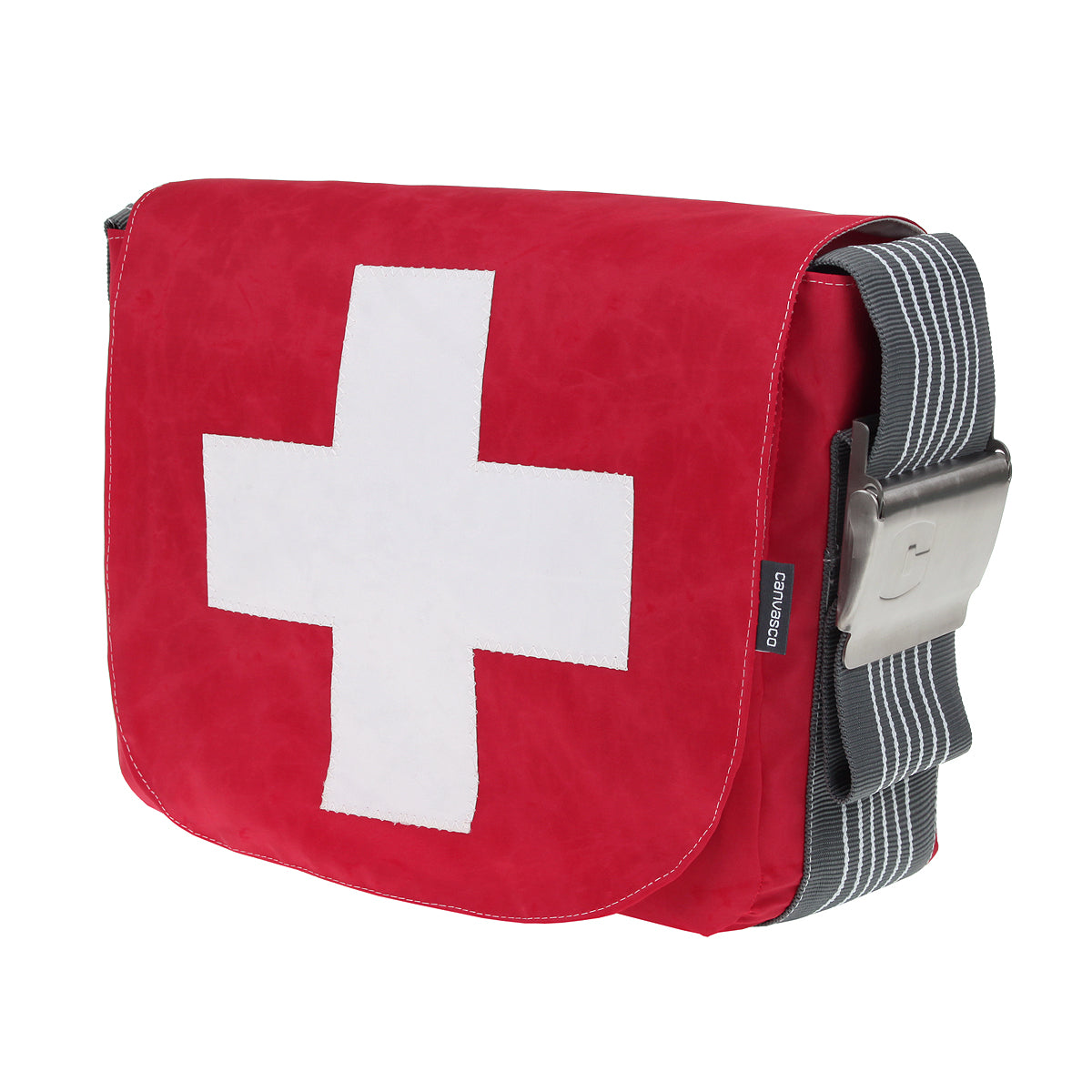 Umhängetasche CANVASCO "Urban" / Segeltuch rot / Gurt grau-weiß / Motiv Kreuz weiß